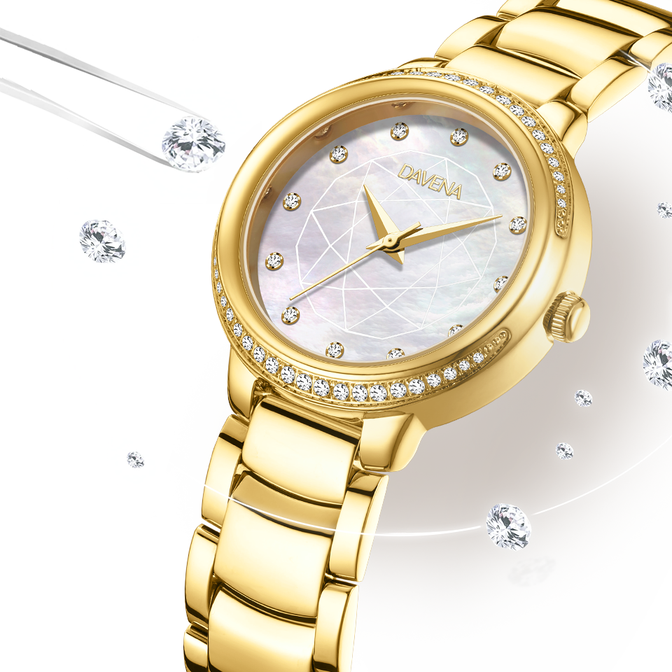 hand-set with 42 shimmering crystals for an exquisite glow.