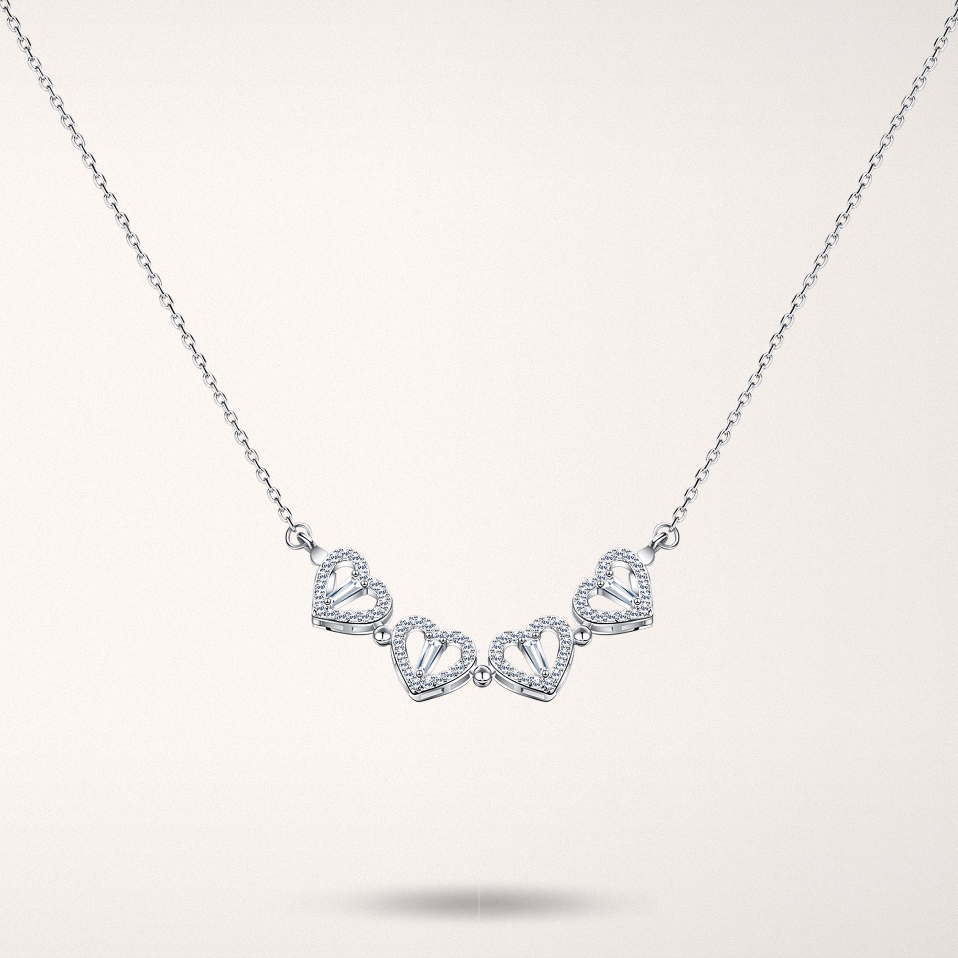 Delicate interlocking hearts shine gracefully, reflecting affection and connection.