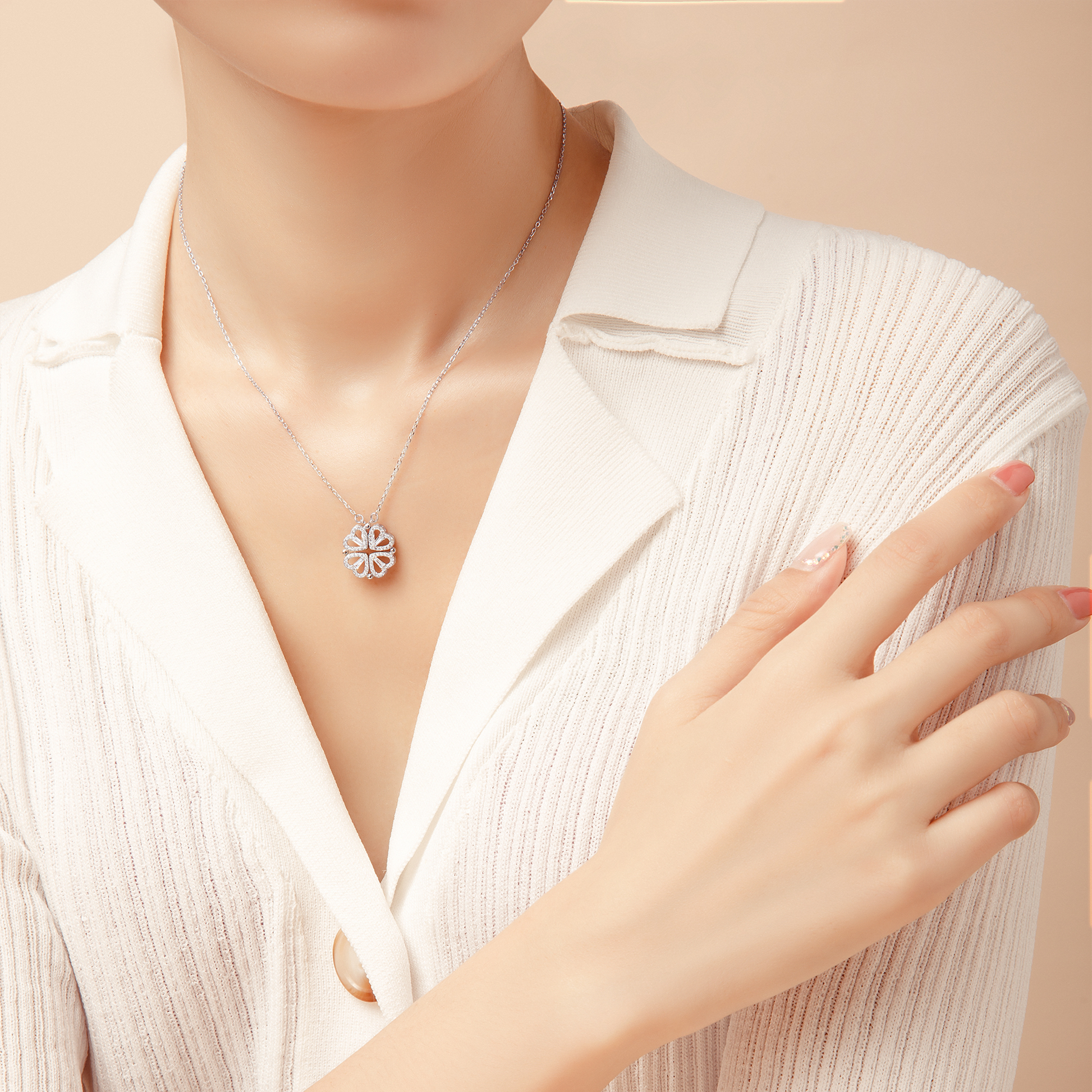 1. Wear the four-leaf clover separately with a built-in magnet.