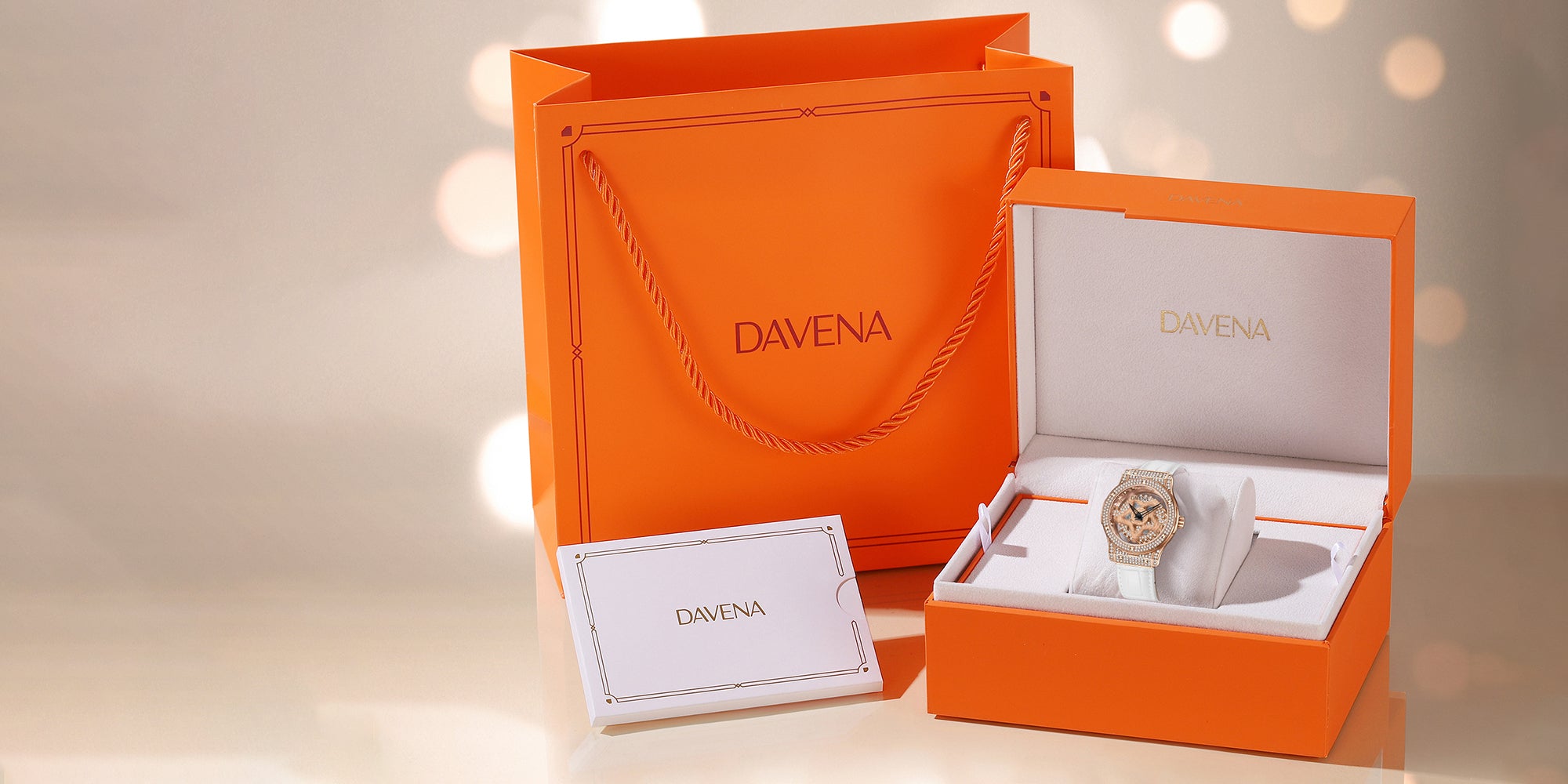 Received this watch as a gift from a friend who knew I liked symbolic designs. Packaging was beautiful, the star dial is even more beautiful in person. I got the silver version and the contrast with the crystals is gorgeous. Also love that Davena includes free gift?wrapping.