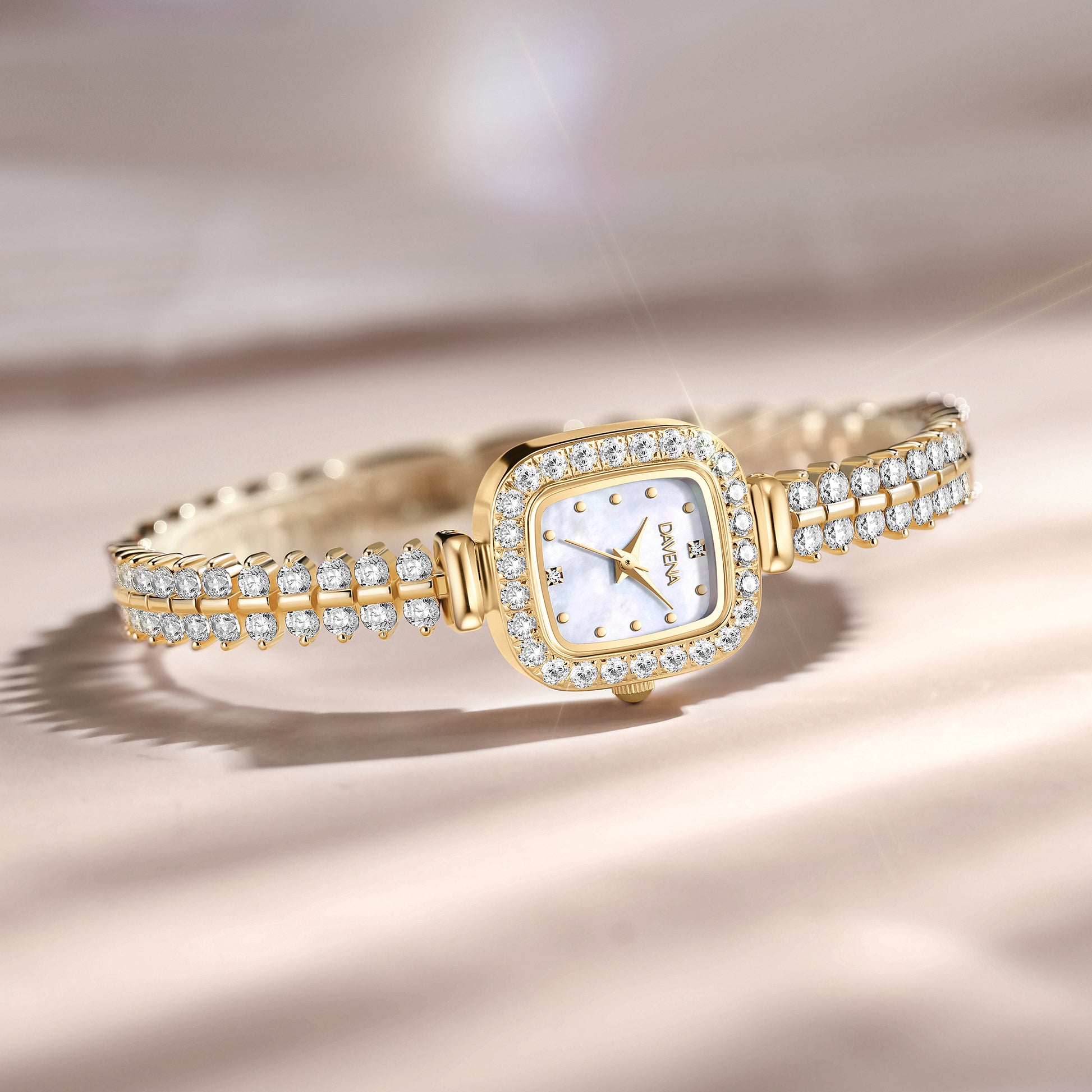 Davena timepieces with white mother-of-pearl dials are masterpieces crafted by nature. The iridescent glow and unique patterns make every watch one of a kind—just like you. Elevate your style with a touch of organic elegance and timeless beauty.