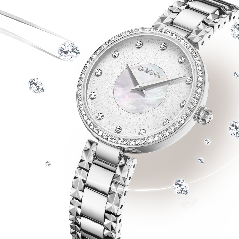 Captures the beauty of time itself—an elegant timepiece that sparkles with sophistication, making every moment radiant.